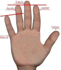 Un arătător mediu, echilibrat, ajunge până la jumătatea primei falange a degetului mijlociu.
