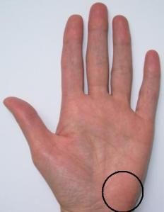 Marginea mâinii este extrem de rotundă, mai ales la dreapta.